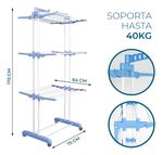 - Cuenta con dos ganchos móviles para colgar la ropa en perchas y lograr un secado sin arrugas.