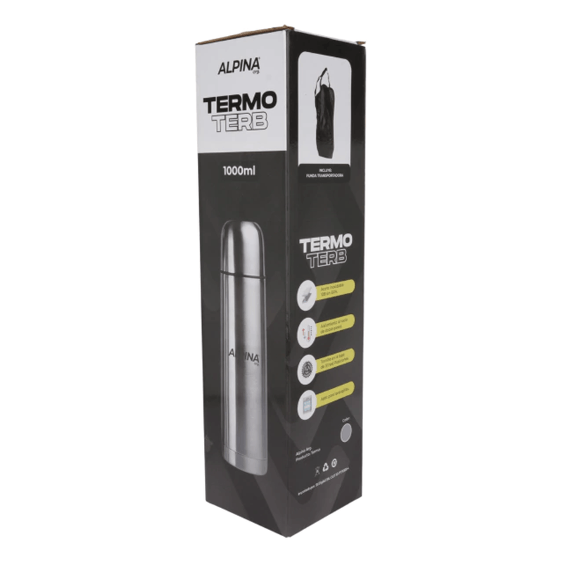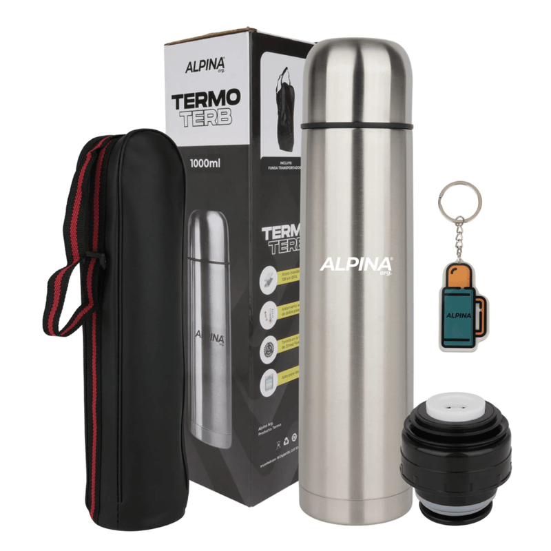 Termo Bala Acero Inoxidable 1 Lt Alpina + Bolso + Llavero