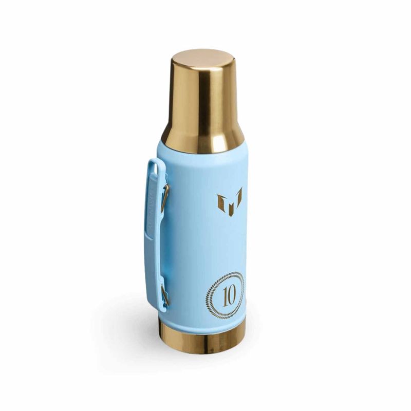tart early. Stay Late. Esta colección Messi x Stanley 1913 en celeste eléctrico cuenta con un relámpago en relieve que resalta con su acabado dorado de primera calidad. El termo MateSystem de 1.2 l cuenta con un tapón único. No necesita girarse. El pico alta precisión permite una cebada continua. La tapa tiene forma de mate para que puedas alimentar tu dedicación dentro y fuera de la cancha.