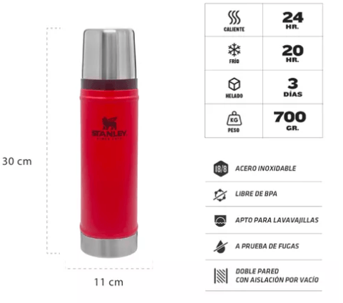 TERMO STANLEY CLASSIC 591 ML 24HS CALIENTE CON TAPON CEBADOR