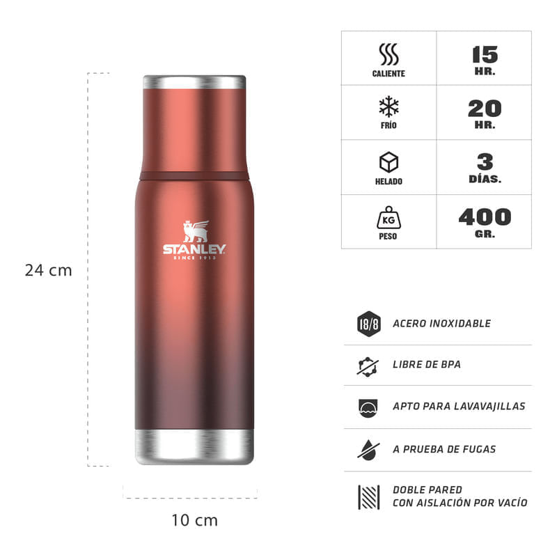 o Mantiene tu bebida 15 horas caliente, 20 horas fría y 3 dias frio cuando inicia con hielo.