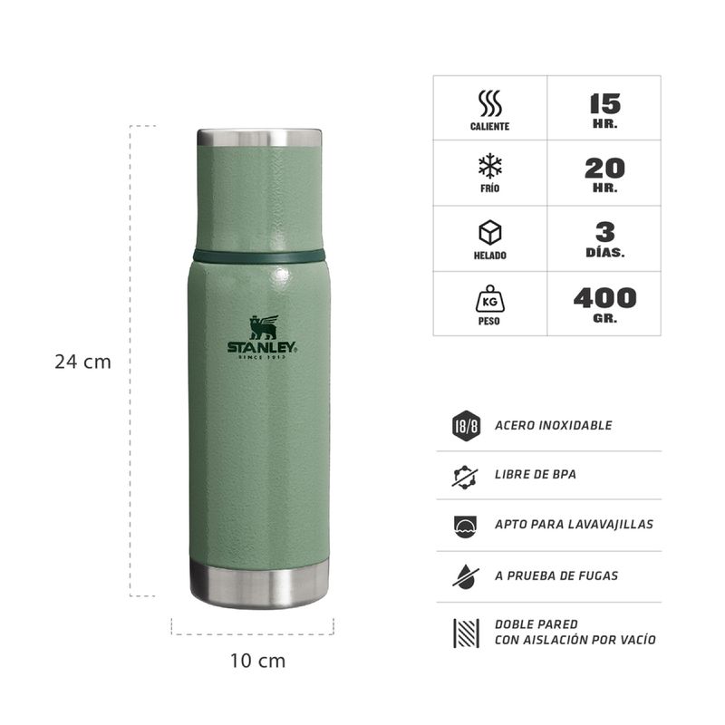 Este modelo cuenta con un tapon cebador de precision 360 grados que garantiza un flujo perfecto y controlado en cada servicio. Gracias a su doble pared con aislacion por vacio, mantiene tus bebidas calientes por 15 horas y frias por 20 horas, siendo la herramienta definitiva para el trabajo o la oficina.