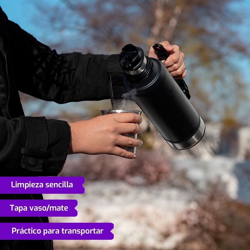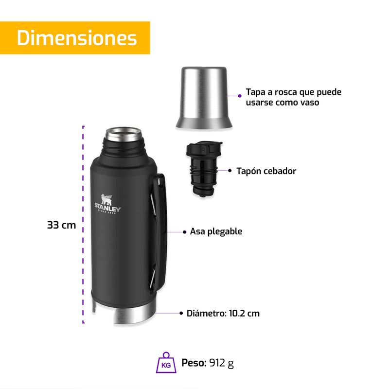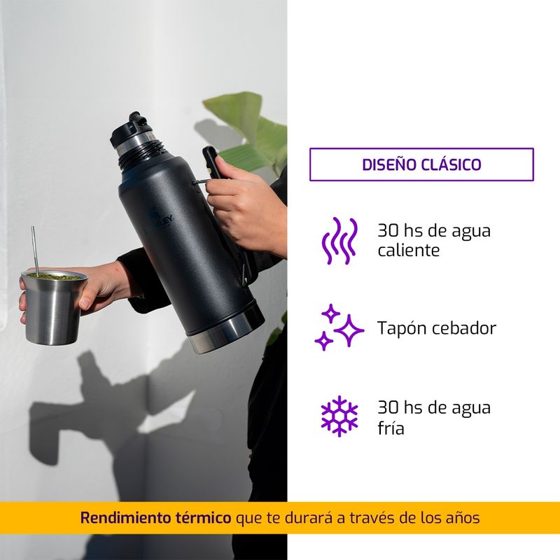 El Termo Stanley Mate System Classic 1.2L es el compañero ideal para los amantes del mate. Diseñado con tecnología exclusiva, cuenta con un tapón de alta precisión que permite un flujo continuo y controlado de agua, asegurando una cebada perfecta. Su tapa de acero inoxidable se convierte en un práctico mate, y su construcción de doble pared con aislamiento al vacío mantiene la temperatura de tus bebidas por horas.