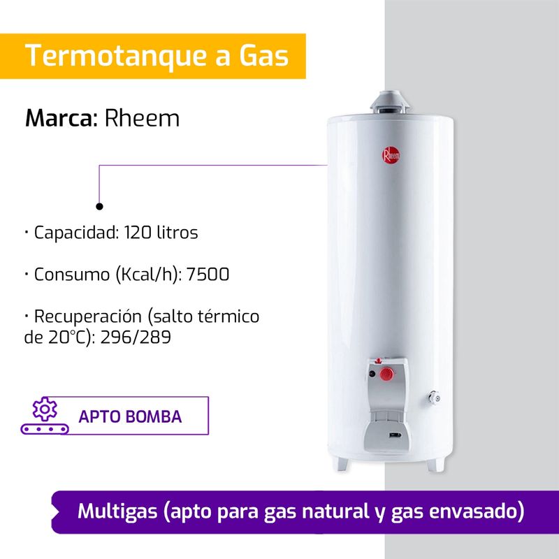Termotanque A Gas Natural Rheem De Pie 120 L TPG120GNRH