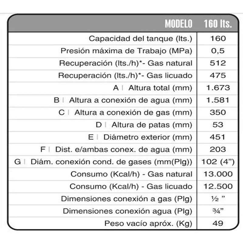 El termotanque a gas Rheem AP160 es la solución ideal para quienes buscan un sistema eficiente y duradero para proveer agua caliente en el hogar. Con una capacidad de 160 litros y una recuperación de 512 litros por hora, este modelo garantiza un suministro continuo de agua caliente para toda la familia.