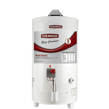 El Termotanque Sherman de 50 Litros. Bajo consumo. Carga superior. Multigas. Altura total 820 mm, Diámetro 450 mm, Consumo Kcal/h: 4000, con una capacidad de recuperación de 140 litros por hora, el Peso vacío es de 24 kg, aislación de poliuretano ecológico.GasLos termotanques a gas son dispositivos que calientan el agua utilizando gas natural o propano como fuente de energía. Estos sistemas operan mediante la combustión de gas en un quemador ubicado en la parte inferior del tanque.Carga SuperiorLa entrada de agua del termotanque se encuentra en la parte superior del tanque y la resistencia eléctrica en la parte inferior.Ideal paraEstá termotanque está diseñado para satisfacer las necesidades de una ducha para hasta 2 personas.