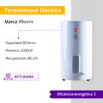 Termotanque Eléctrico 85 Lts Rheem De Pie Conexión Superior