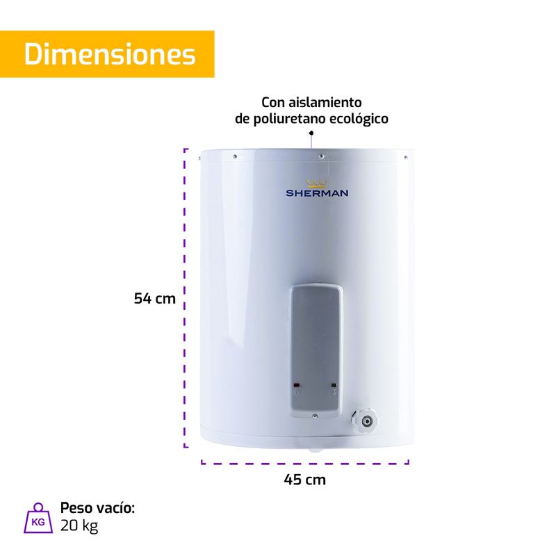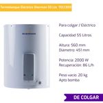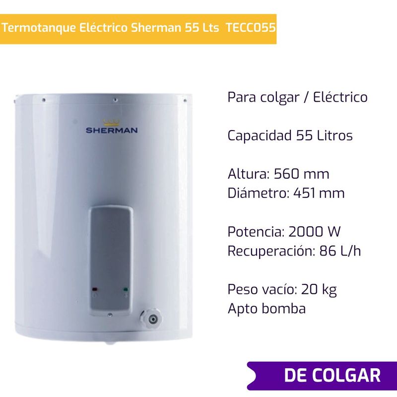Termotanque Eléctrico Sherman Bajo Consumo 55 Lts De Colgar