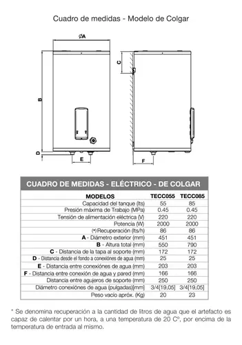 MAYOR RECUPERACIÓN de litros de agua caliente por hora.