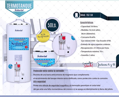 Termotanque Multigas Señorial 50l Tsz-50 Alta Recuperación