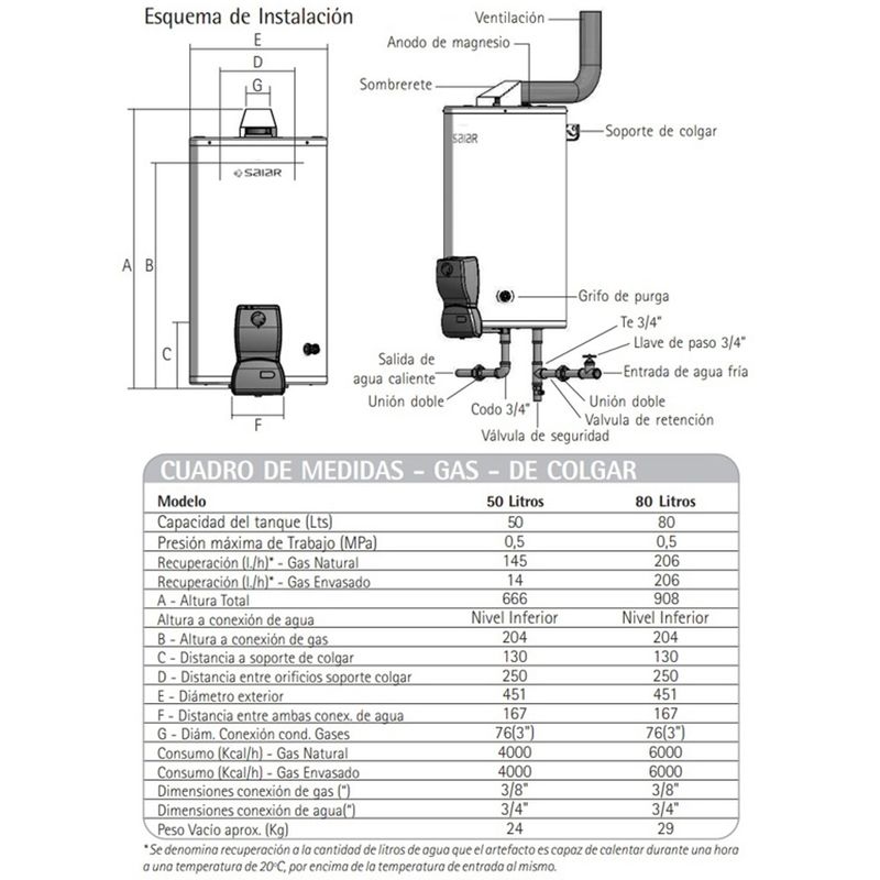 TERMOTANQUE BIGAS DE COLGAR TCG050MSA 50L C/I SAIAR