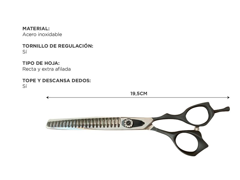 La nueva tijera microdentada extra afilada es ideal para reducir el volumen del pelaje de tus mascotas o para uso profesional. La forma de su hoja permite entresacar los pelos sin reducir el largo. Su medida es de 7"