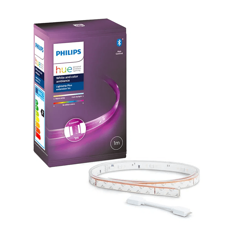 ***Extensión de hasta 10 metros*** Extiende tu Philips Hue Lightstrip Plus hasta 10 metros, agregando extensiones* de 1 metro para cubrir superficies más grandes y activar aplicaciones más amplias. Desde iluminación de indirecta brillante hasta luces de navegación ambientales en el pasillo o las escaleras, todo es posible. La tira de luces Philips Hue Plus te brinda continuidad de color pleno desde la primera extensión hasta la última. *Solo se puede extender con la versión compatible con Bluetooth.