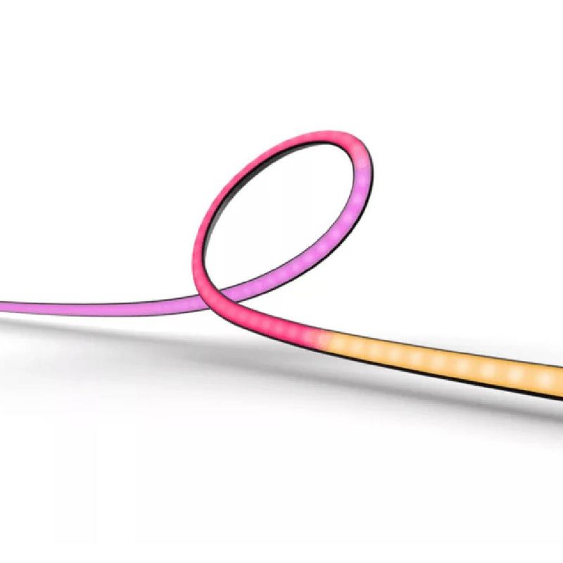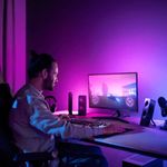 La Hue Play gradient lightstrip para PC está disponible en tres tamaños para configuraciones un único monitor y tres monitores e incluye clips de montaje, lo que facilita la conexión a la parte posterior del monitor.