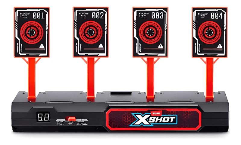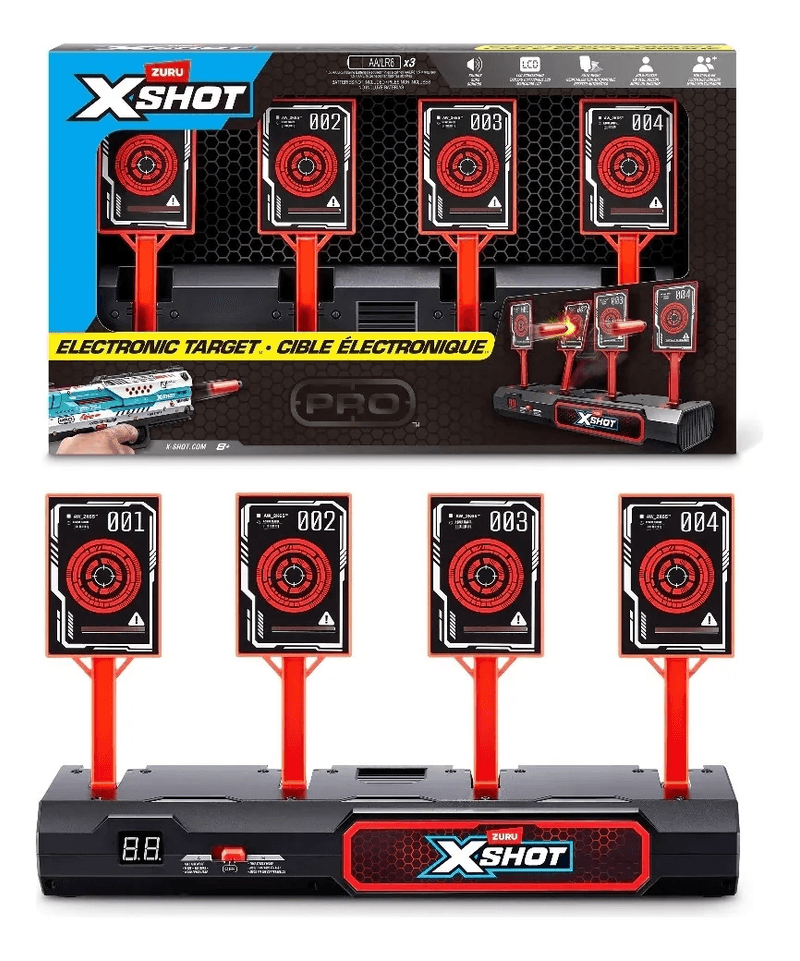 Blanco electrónico interactivo diseñado para juego con blasters X-Shot. Ideal para prácticas de puntería, competencia entre amigos y entrenamientos de precisión; incorpora funciones electrónicas que registran aciertos y añaden dinamismo al juego.