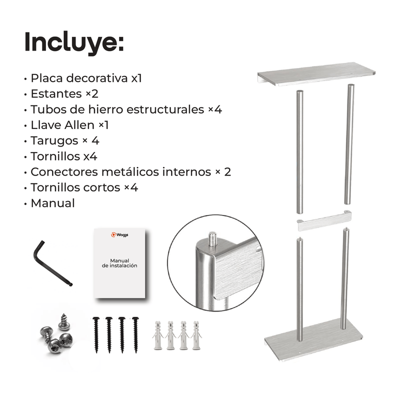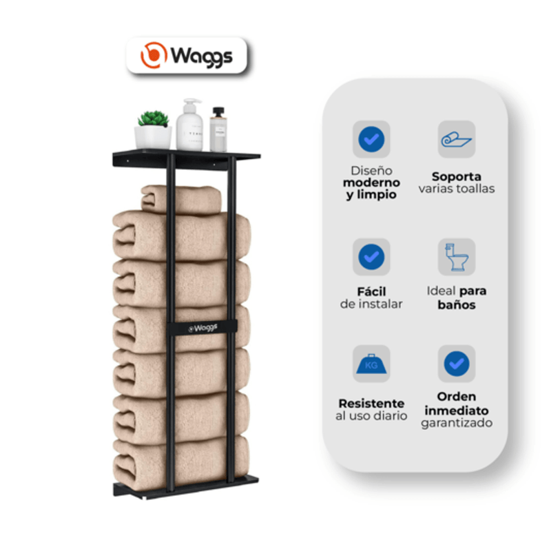 El toallero mural WAGGS ACCB12 combina diseño minimalista y funcionalidad inteligente para aprovechar al máximo el espacio en altura. Fabricado en hierro resistente, ofrece gran capacidad en un formato compacto, ideal para baños modernos o de estilo industrial. Su diseño vertical permite organizar varias toallas sin ocupar demasiado lugar, manteniendo el ambiente ordenado y estéticamente equilibrado. Incluye fijaciones, tornillos y manual para una instalación rápida y segura. Práctico, duradero y elegante, el WAGGS ACCB12 transforma tu baño con una solución que une orden, estilo y resistencia.