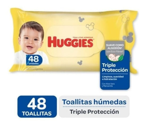 Las Toallitas húmedas Huggies Triple Protección están diseñadas para solucionar la limpieza de todos los días. Tienen extracto de manzanilla y una delicada fragancia para la limpieza del bebé. Además están hechas con Eco-Fibras, fibras naturales que limpian delicadamente su piel. ( Fibras de origen natural contenidas en el producto)