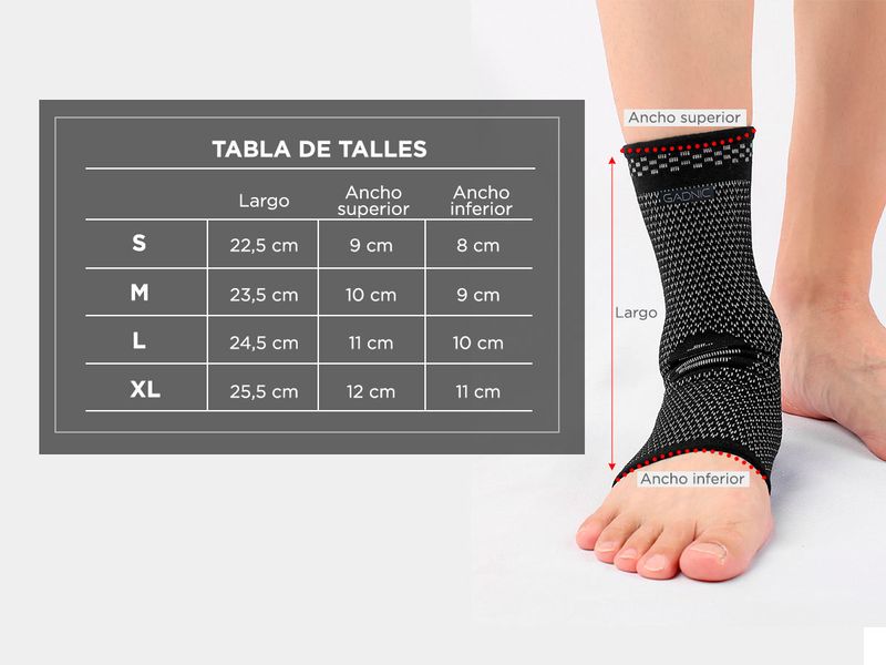 Utilizar la tobillera te contribuirá a una rápida desinflamación y rehabilitación de lesiones, protege y ayuda a prevenir torceduras, esguinces y dolores articulares, absorbe rápidamente la transpiración y mantiene la piel libre de sudor