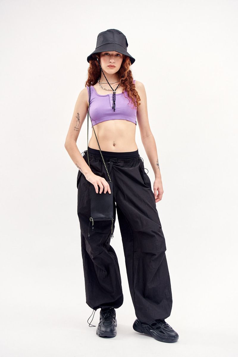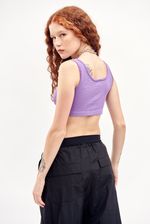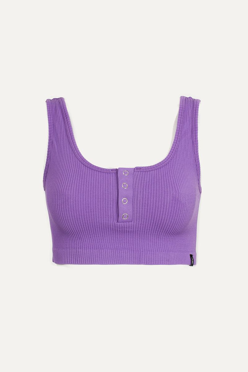 Top tejido tipo morley sin costuras. Escote con hilera botones a presión. Breteles gruesos.