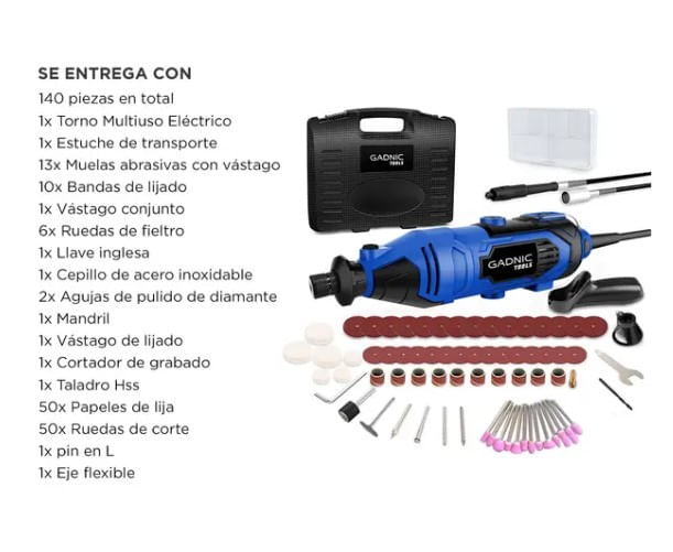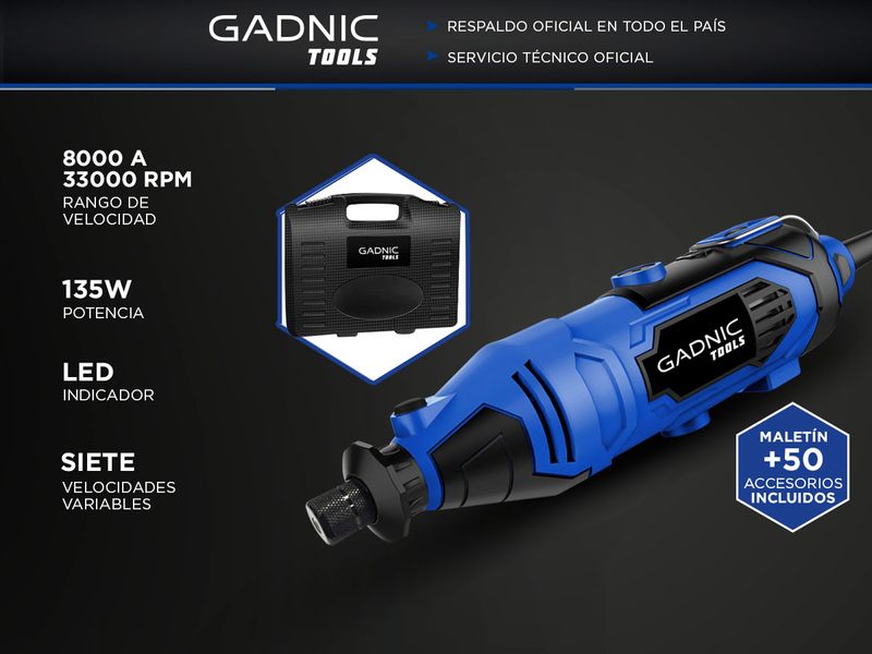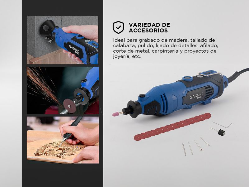 Herramienta de manualidades de alto rendimiento Gadnic. Herramienta giratoria eléctrica con cable de 135 W/1,2 Amp que dura más tiempo.