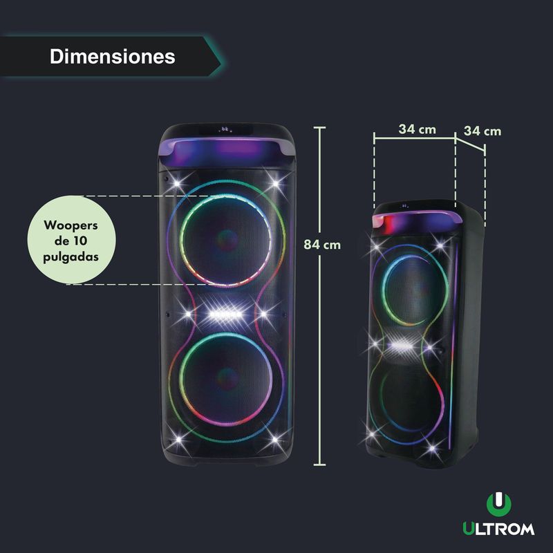La Torre de Sonido Ultrom Cancun es la mejor opción para disfrutar de tus playlists favoritas, animar fiestas y compartir un sonido de alta calidad.