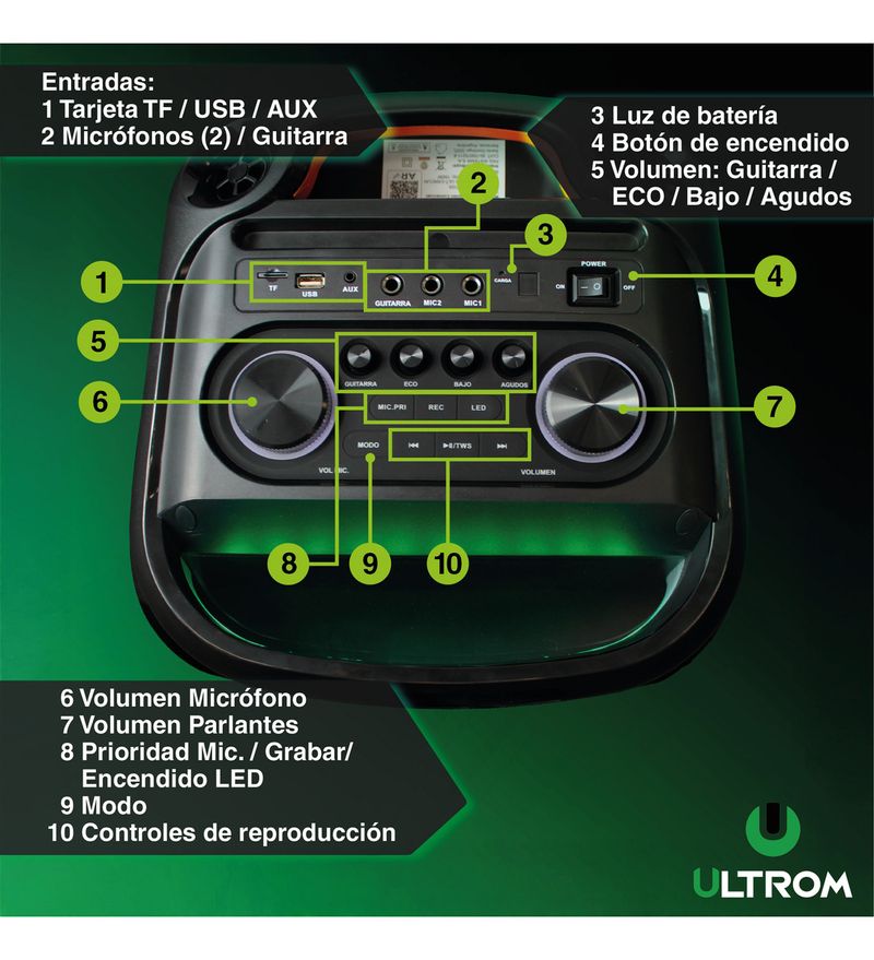 Viví tus reuniones y fiestas con un sonido potente y envolvente gracias a la torre de sonido Ultrom Cancun. Con 12000W de potencia y woofers 2 x 10", ofrece un audio claro, con graves profundos y un volumen ideal para cualquier ambiente.
