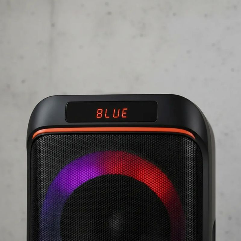 Las luces LED añaden un toque visual atractivo, creando un ambiente festivo que complementa la música. Aunque no es a prueba de agua, su diseño elegante y funcional se adapta a diversas ubicaciones, convirtiéndolo en un elemento destacado en cualquier evento.