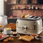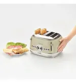 La tostadora eléctrica Vintage cuenta con 4 ranuras, con controles separados para cada par de rebanadas de pan, para tostar las rebanadas de pan en 6 niveles de tostado diferentes. Cuando la tostada está lista, la función de expulsión automática te permite sacar la rebanada de pan de forma segura.