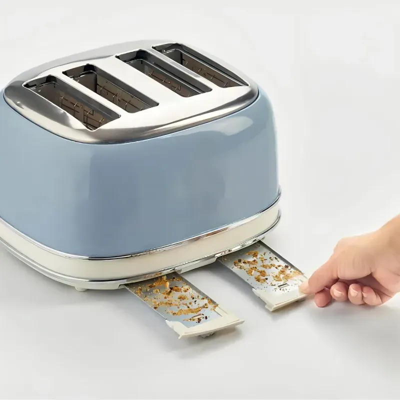 La tostadora eléctrica Vintage cuenta con 4 ranuras, con controles separados para cada par de rebanadas de pan, para tostar las rebanadas de pan en 6 niveles de tostado diferentes. Cuando la tostada está lista, la función de expulsión automática te permite sacar la rebanada de pan de forma segura.