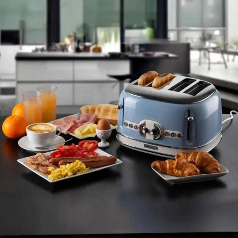 La tostadora eléctrica Vintage 156 de Ariete es la tostadora de diseño que, con sus formas únicas y sus colores pastel, decora tu cocina.