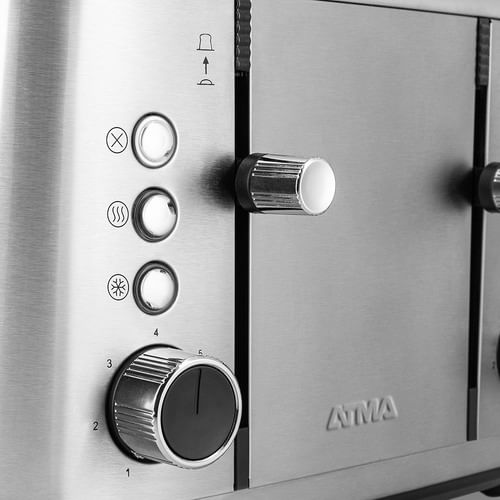 La Tostadora Atma TO9000IP permite elegir entre 7 niveles de tostado para lograr el punto justo en cada desayuno. Con funciones de descongelado y cancelación, ofrece practicidad y control en su uso diario. Potente y confiable
