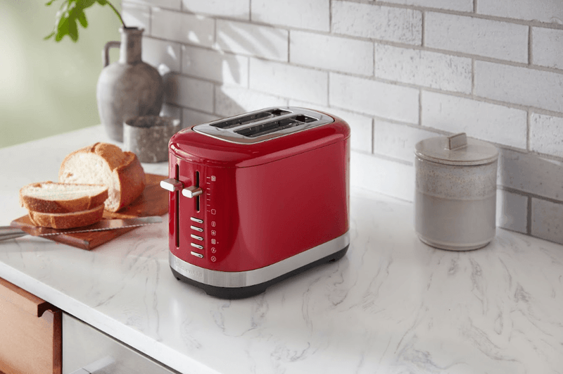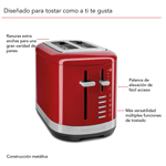 Haz que el día a día sea simplemente delicioso y tuesta fácilmente tus panes favoritos, bagels y mucho más con facilidad. Esta tostadora KitchenAid® de 2 rebanadas cuenta con ranuras extra anchas para tostar una gran variedad de formas y tamaños, incluyendo panes caseros o artesanales. Para mayor comodidad, el control de tono ajustable, de claro a oscuro, garantiza que tendrás tus tostadas como a ti te gustan, siempre. Está hecha para durar y su resistente diseño metálico añade estilo a tu encimera.