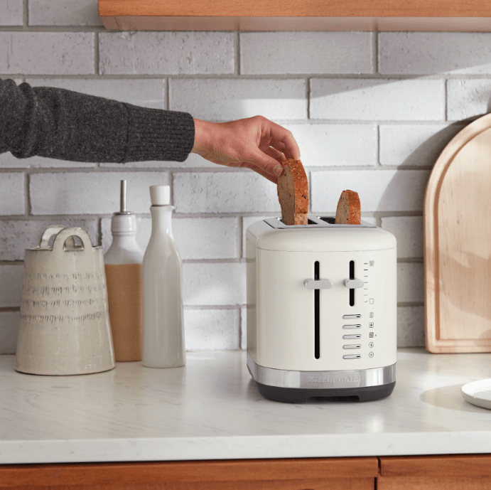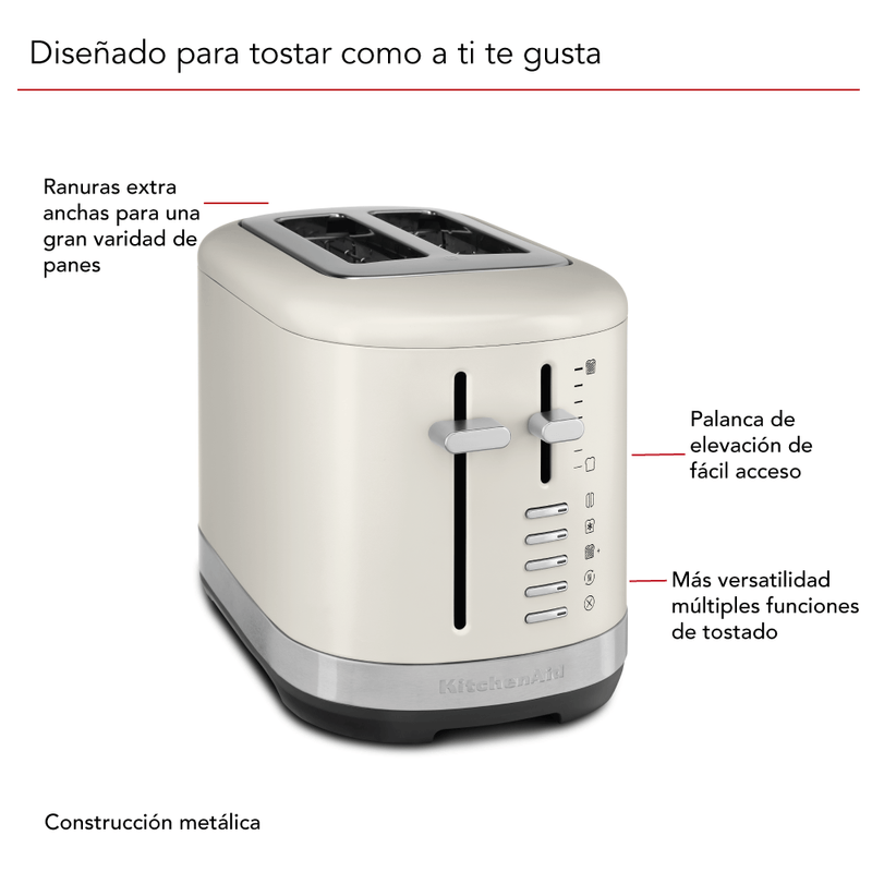 Haz que el día a día sea simplemente delicioso y tuesta fácilmente tus panes favoritos, bagels y mucho más con facilidad. Esta tostadora KitchenAid® de 2 rebanadas cuenta con ranuras extra anchas para tostar una gran variedad de formas y tamaños, incluyendo panes caseros o artesanales. Para mayor comodidad, el control de tono ajustable, de claro a oscuro, garantiza que tendrás tus tostadas como a ti te gustan, siempre. Está hecha para durar y su resistente diseño metálico añade estilo a tu encimera.