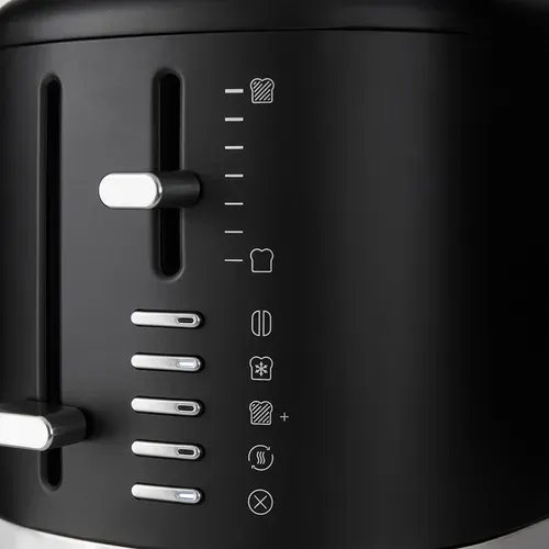Equipada con prácticas funciones, esta tostadora te ofrece aún más versatilidad con funciones especiales: Descongelar, Recalentar y Un Poco Más Largo. Esto significa que si tienes prisa y tuestas directamente del congelador, o tardas unos minutos en sacar las tostadas, seguirán estando perfectamente calientes.