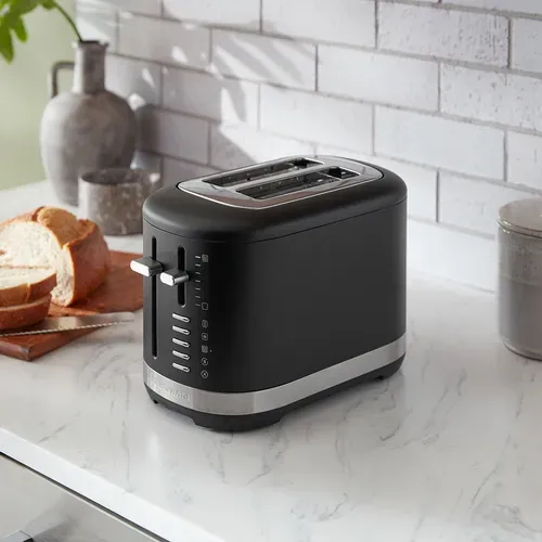 Tostadora de 2 rebanadas con ranuras extra anchas para pan artesanal o bagels, hasta 3 cm de ancho.