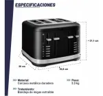 Tostadora para 4 rebanadas con ranuras extra anchas para pan artesanal o bagels, hasta 3 cm de ancho.
