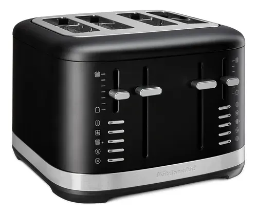 Su diseño y acabados totalmente metálicos le aportan un toque de estilo. Esta tostadora de 4 ranuras de KitchenAid está diseñada para durar, así que podrá disfrutarla durante años. La palanca manual de elevación alta le permite acceder a pequeños trozos de pan y controlar el progreso sin interrumpir el tostado.