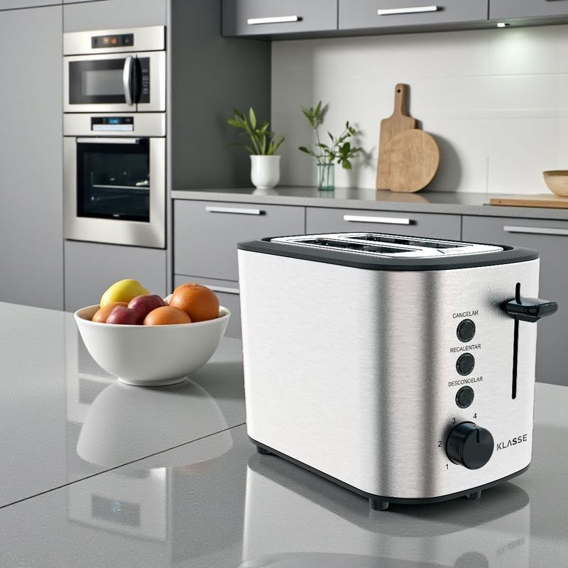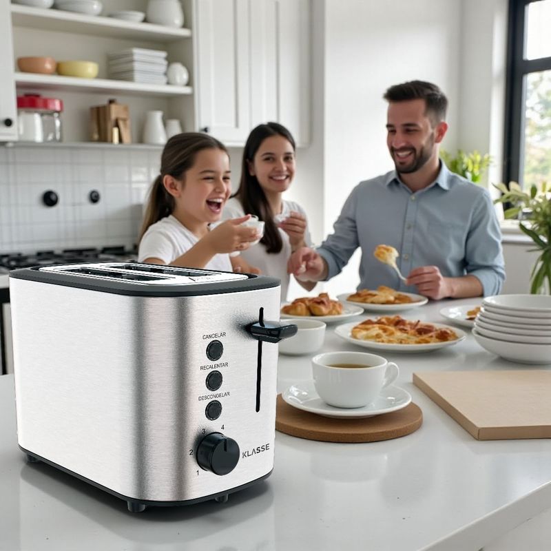 Disfruta cada mañana de tostadas perfectas, crocantes y doradas exactamente a tu gusto. La Tostadora KLASSE combina diseño moderno, practicidad y control total del tostado para acompañarte en el desayuno o la merienda con resultados consistentes y deliciosos.