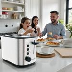- Pensada para el uso diario, posee bandeja recoge-migas extraíble, que simplifica la limpieza, y base antideslizante y guarda cable, ofreciendo mayor estabilidad y orden en la cocina. Su cuerpo de acero inoxidable con acabado antihuellas no solo garantiza durabilidad, sino también una estética premium que realza cualquier espacio.