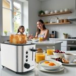 - El diseño incorpora botones con iluminación LED, que facilitan el uso y aportan un toque moderno y elegante. Además, incluye función de elevación alta, ideal para retirar las tostadas de forma cómoda y segura.