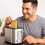 Esta tostadora cuenta con bocas extra grandes que se adaptan a todo tipo de panes, desde rebanadas clásicas hasta bagels y panes gruesos. Con sus 6 niveles de tostado, podés personalizar el dorado según tu gusto: desde un tostado suave hasta uno más intenso y crocante.