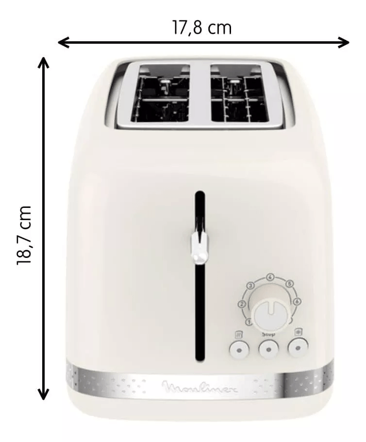 • Cuenta con dos ranuras de ancho variable, aptas para rebanadas de distintos grosores.