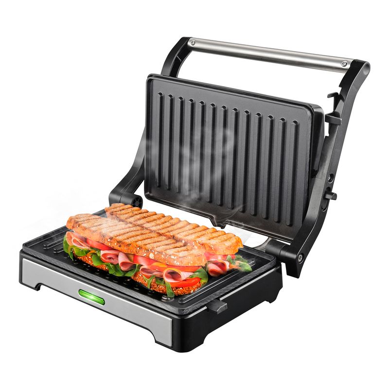Diseño multiusos: Ideal para tostar paninis, preparar sándwiches, calentar alimentos y asar carnes o vegetales.