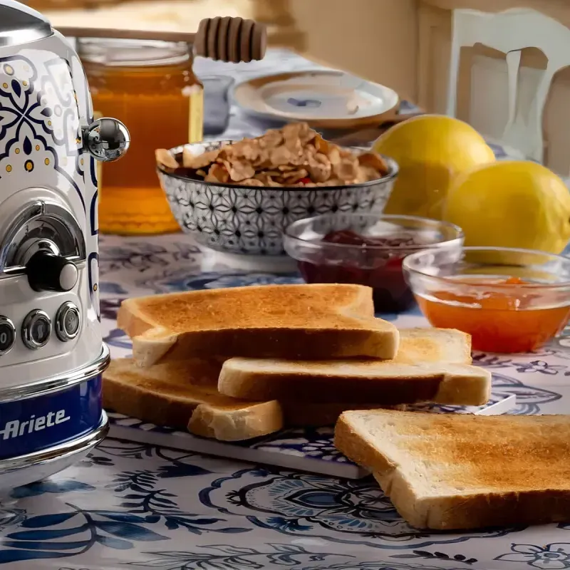Disfrutá de desayunos y meriendas con estilo gracias a la Tostadora Eléctrica Capri de Ariete, que combina diseño mediterráneo con la practicidad de tostar hasta 2 rebanadas a la vez.