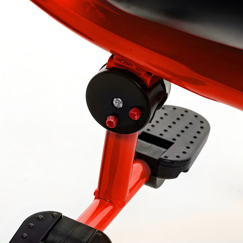 El posapiés es rebatible, lo que permite adaptar el triciclo al crecimiento del niño.