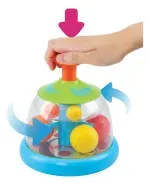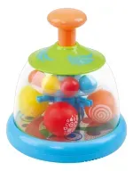Presiona el botón de seguridad y observa cómo las bolas multicolores giran dentro del juguete.