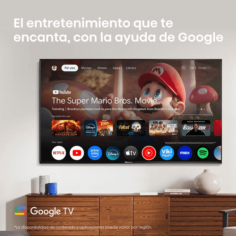 Smart TV: Sistema operativo Google TV con acceso a aplicaciones (Netflix, YouTube, Disney+), Chromecast integrado y control de voz (Google Assistant).
