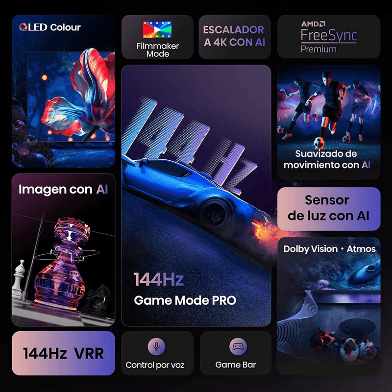 Imagen Superior: Tecnología QLED (Quantum Dot) para colores más vibrantes y precisos, con resolución 4K UHD (3840x2160).