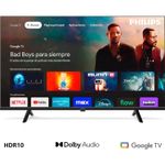 TV LED SM 40P FHD 40PFD6920 GOOGLE TV PHILIPS -Tamaño de pantalla 40" -Resolución: 1920 x 1080 (Full HD) -Tecnología de pantalla: LED -Sistema operativo: Google TV -Asistente de voz: Google Assistant (control remoto con micrófono) -Modos de imagen: User # Estándar # Vívido # Deporte # Película # Juegos # Ahorro de energía -Frecuencias de entrada soportadas: 576p # 50 Hz 640 x 480 # 60 Hz 720p # 50/60 Hz 1920 x 1080p # 24/25/30/50/60 Hz 2560 x 1440 # 60 Hz 3840 x 2160p # 24/25/30/50/60 Hz -TV digital: ISDB-T -Funciones Smart TV: Netflix # Disney+ # YouTube # Amazon Prime Video # Google Play Movies Google Search # YouTube Music -Espejado de pantalla -Aplicaciones multimedia compatibles: Video: VP9 # HEVC/H.265 # MPEG1/2 # MPEG4 # H.263 # H.264 # AVS # AVS+ # WMV3 # VC1 # Motion JPEG # VP8 # RealVideo 8/9/10 # AV1 Música: MPEG1/2 Layer 1/2/3 # AC3 (DD) # EAC3 (DDP) # AAC-LC # HEAAC # WMA # WMA 10 Pro (M0/M1/M2) # VORBIS # DTS # DTS LBR # DTS XLL # DTS Master Audio # LPCM # IMA-ADPCM # MS-ADPCM # G711 A/mu-law # LBR (cook) # FLAC # OPUS # AC4 # Fraunhofer MPEG-H -Subtítulos: SRT # SMI # SSA # SUB # ASS # TXT -Imágenes: JPEG # PNG # BMP # GIF # TIFF # HEIF -Sonido: Potencia de salida: 12 W RMS (2 x 6 W) Configuración de altavoces: 2 x 10 W BOX # 8 O Códec: Dolby Audio -Conectividad: HDMI: 2 puertos (HDMI1 con ARC # ALLM en ambos) USB: 2 puertos Ethernet (LAN RJ-45) Bluetooth 5.1 Wi-Fi Dual Band 2x2 HDMI CEC: EasyLink -Memoria interna: 16 GB -Consumo energético: Alimentación: 100-240 V ~ 50/60 Hz Modo de espera:
