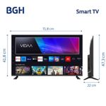 TV LED SMART 32P HD B3225H5 -Marca BGH -Modelo B3225H5 -Tipo de pantalla LED -Tamaño de pantalla 32" (80 cm) -Resolución HD (1366 x 768 px) -Relación de aspecto 16:9 -Frecuencia de imagen 60 Hz -Brillo 180 cd/m² -Contraste estático 3000:1 -¦ngulo de visión 178°/178° -Tiempo de respuesta 8 ms -Sistema operativo VIDAA U6 -Procesador MTK9602 (1.15#1.45 GHz) -Memoria RAM 1 GB -Memoria interna 4 GB (no accesible porel usuario) -Smart TV Sí -Apps preinstaladas Netflix, Prime Video, YouTube, Disney+, PlutoTV, Flow, Claro Video -App Store VIDAA APP Store -Wi-Fi Sí (2.4 GHz / 802.11 b/g/n) -Bluetooth No -Conectividad cableada Ethernet RJ-45 -Entradas HDMI 3 (HDMI 1 con ARC, HDMI 2/3 con AMML) -Entradas USB 2 (USB 2.0, máx. 500 mA c/u) -Salida de audio digital S/PDIF óptica -Salida auriculares Sí -Sintonizador Analógico (PAL/NTSC), Digital ISDB-T -PVR (grabación por USB) Sí -Timeshift No -Modos de imagen: Vívido, Estándar, Ahorro Energía, Cine Día, Cine Noche, Deportes -Modos de sonido: Estándar, Teatro, Música, Diálogo, Nocturno, Deportes -Sonido 2 x 6W # DTS TrueBass, DTS VirtualX, Dolby Digital -Comandos por voz App VIDAA Voice (Android/iOS) -Montaje en pared (VESA) 200 x 200 mm (4 tornillos M6, no incluidos) -Dimensiones con base 718 P 473 P 220 mm -Dimensiones sin base 718 P 418 P 76 mm -Dimensiones embalado 793 P 486 P 119 mm -Peso con base 3.7 kg -Peso sin base 3.6 kg -Peso bruto 4.9 kg -Consumo de energía 50 W -Consumo en espera 0.29 W -Clase energética A -Accesorios incluidos Control remoto, 2bases, tornillos, cable de alimentación, manual -Distancia óptima visualización 2.1 - 2.5 m -Modelo: B3225H5 -Garantía fabricante 12 meses -Origen Argentina